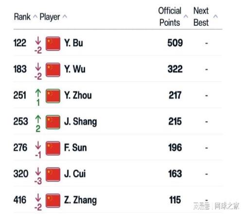 從本周公布最新的男單排名來看,布云朝克特的排名雖然下滑到了第122位,但仍是中國一哥。 排名躍升速度最快的當屬吳易昺,去年這個時候他的排名還讓人無比擔憂,現(xiàn)在卻已經(jīng)來到了第183位,這個位置讓他穩(wěn)坐中國二哥之位。 周意當前以第251位成為了中國三哥,昔日的中國一哥商竣程雖然排名滑落到了第253位,卻緊隨小周同學之后。這位中國四哥如果明年新賽季不受傷病影響的話,估計排名重返二哥之位應該不成問題,甚至在很多球迷和網(wǎng)友們看來,目前布云朝克特在冬訓期間最應該考慮一個現(xiàn)實性的問題,2026賽季如何守住自己的一哥之位。