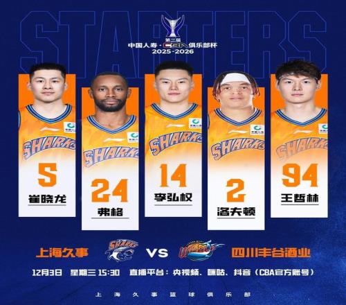 12月3日,南昌國(guó)際體育中心。第二屆CBA俱樂(lè)部杯戰(zhàn)幕拉開(kāi),衛(wèi)冕冠軍上海久事男籃以一場(chǎng)酣暢淋漓的111比72大勝,擊敗四川豐谷酒業(yè)隊(duì),強(qiáng)勢(shì)開(kāi)啟B組小組賽征程。全隊(duì)12人輪換、7人得分上雙的團(tuán)隊(duì)表現(xiàn),展現(xiàn)出“大鯊魚(yú)”志在衛(wèi)冕的決心與深厚陣容底蘊(yùn)。 比賽從第一分鐘起就進(jìn)入上海隊(duì)的節(jié)奏,首發(fā)五虎崔曉龍、弗格、李弘權(quán)、洛夫頓與王哲林迅速進(jìn)入狀態(tài)。王哲林內(nèi)線連得5分開(kāi)局,洛夫頓外線三分、搶斷扣籃一氣呵成,一波12比5的攻勢(shì)奠定了基調(diào),首節(jié)結(jié)束比分已拉開(kāi)至36比20。