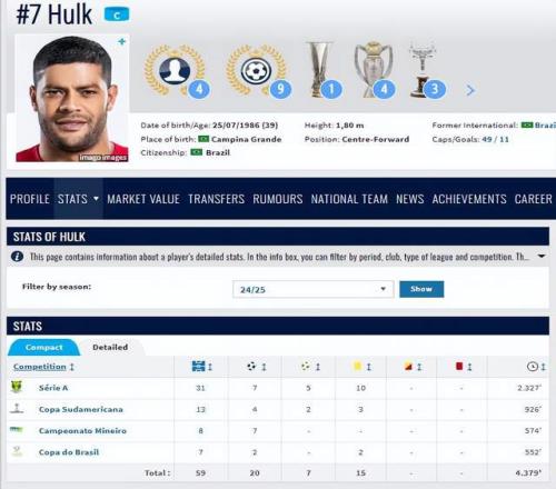 如今39歲的胡爾克,與米內(nèi)羅競技的合同也接近尾聲,雖然本賽季他在球隊(duì)的數(shù)據(jù)表現(xiàn)有所下滑,但依然踢了足足59場比賽,貢獻(xiàn)20球7助攻,1人獨(dú)造27球,甚至絕大部分比賽都是首發(fā)出場,而且能打滿多數(shù)的比賽,身價也還有150萬歐元。
