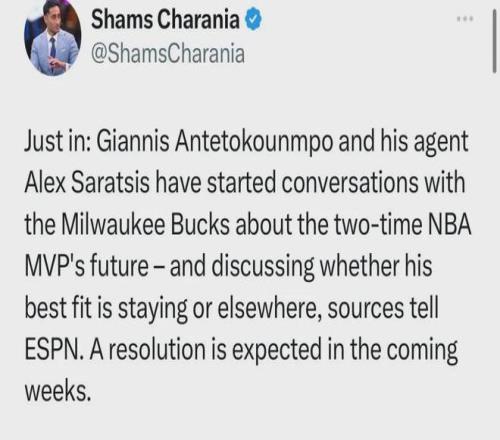 同樣來自爆料王Shams的消息源,倘若字母哥申請交易,涉及的球隊將遠不止紐約尼克斯。薪資專家Marks對此表示,其余29支球隊都會跟雄鹿打電話詢價字母哥。
