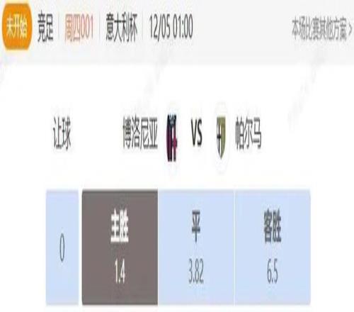 2.專家:高飛 競足 周四001 意大利杯 博洛尼亞VS帕爾馬 開賽時間:2025-12-05 01:00:00