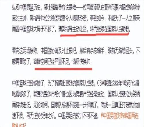中國(guó)男籃雖然在亞洲杯勇奪亞軍,一時(shí)獲得人們的掌聲,好評(píng)如潮。但是時(shí)隔三個(gè)月,中國(guó)隊(duì)判若兩隊(duì),完全變了樣,來(lái)到世預(yù)賽小組賽徹底被韓國(guó)隊(duì)打回原形,兩戰(zhàn)兩敗,而且輸?shù)檬謴氐?,開成了一邊倒,與韓國(guó)隊(duì)完全不是同一個(gè)檔次。媒體人和球迷紛紛質(zhì)疑主帥郭士強(qiáng)指導(dǎo)能力,知名媒體人付政浩更是對(duì)他差評(píng),要求郭指導(dǎo)主動(dòng)讓賢,中國(guó)男籃盡快換帥。
