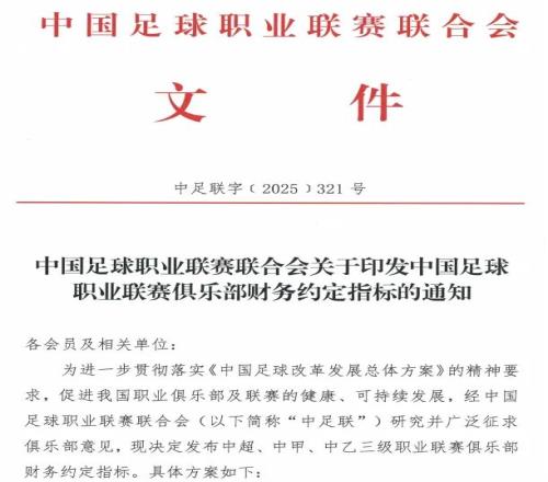 日前,中足聯(lián)在官網(wǎng)發(fā)布《中國(guó)足球職業(yè)聯(lián)賽俱樂部財(cái)務(wù)約定指標(biāo)》,明確規(guī)定了俱樂部總支出限額、一線隊(duì)球員薪資、俱樂部獎(jiǎng)金限額等財(cái)務(wù)指標(biāo),并出臺(tái)了對(duì)應(yīng)的處罰措施。明眼人都看得出,其所針對(duì)的,就是“金元足球”盛行時(shí)的種種怪象,給俱樂部減負(fù),維持聯(lián)賽的健康發(fā)展。