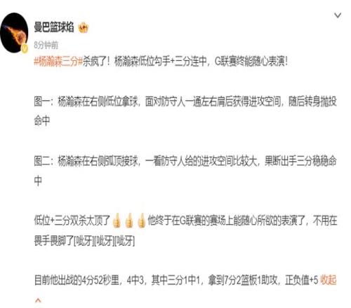 博主:楊瀚森在G聯(lián)賽可以隨心表演,在G聯(lián)賽大殺四方。