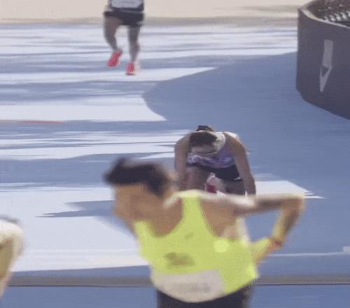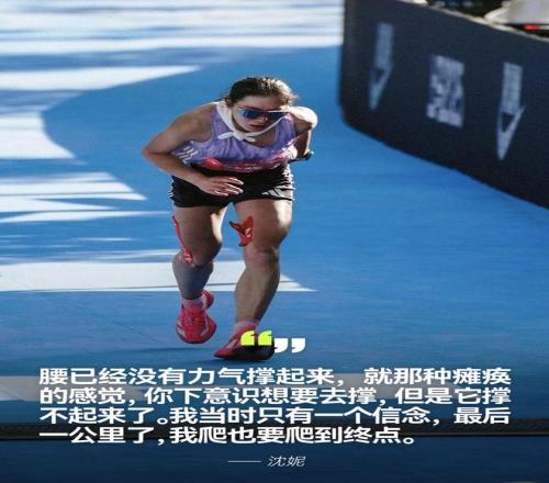 上馬起跑前 沈妮在脖頸系上了防熱的吸汗巾 這是姚妙傳授給她的經(jīng)驗 前半程我跑得挺順的,體感和狀態(tài)都不錯。甚至過了35公里,我能遠遠看見姚妙的身影,大概落后她一二百米。我心里只有一個目標(biāo):突破231。 最后幾公里,腰傷隱隱發(fā)作。我每跑幾步就得用手撐一下腰。到最后一公里,腰疼徹底爆發(fā)了——腰根本直不起來,整個人佝僂著往前挪,感覺隨時會摔倒。但我告訴自己不能倒,一摔可能傷得更重,影響后面的訓(xùn)練。我硬頂著,實在頂不住,只好嘗試降速。但前面沖得太快,身體有慣性,想慢下來也不容易,還怕失去平衡摔倒。整個人像在和自己身體打架,意志拼命拖著身體往前。