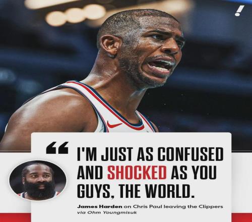 之前哈登回應保羅突然和快船分手一事時,說道:“睡醒看到新聞,我跟全世界一樣感到震驚困惑?!?/p>