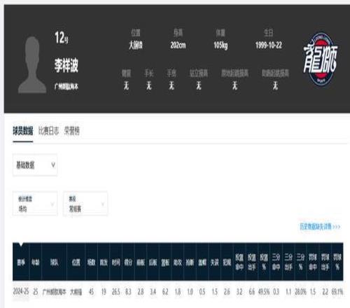 說起李祥波,很多球迷都是意難平。這位山東大漢,去年夏天,才通過選秀大會(huì),被廣州男籃帶入了CBA的舞臺(tái)。之前的時(shí)候,他一直都在NBL的安徽文一男籃打球,盡管在NBL的舞臺(tái)上,李祥波展現(xiàn)出了強(qiáng)大的實(shí)力,但來到CBA的舞臺(tái)之后,他在廣州男籃陣中,并沒有給人眼前一亮的感覺,上賽季打了45場(chǎng),在場(chǎng)均26.5分鐘時(shí)間里,只能拿到8.3分6.2籃板1.8助攻1搶斷0.5蓋帽,投籃命中率僅49.5%,三分球命中率28%,罰球命中率69.1%。