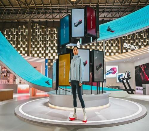 On昂跑展臺(tái)運(yùn)動(dòng)員故事圖片來(lái)源:On昂跑 SALOMON薩洛蒙則以另一種方式切入中國(guó)跑者生態(tài)。在越野領(lǐng)域建立強(qiáng)勢(shì)品牌心智后,其在上海體博會(huì)的亮相標(biāo)志著品牌正式邁入"路野雙修"時(shí)代。借助上海馬拉松的國(guó)際影響力,SALOMON薩洛蒙通過(guò)S/LAB PHANTASM 3的全球首秀構(gòu)建強(qiáng)勢(shì)的路跑敘事。該鞋款由品牌與瑞士空氣動(dòng)力學(xué)機(jī)構(gòu)Swiss Side聯(lián)合開(kāi)發(fā),并在風(fēng)洞測(cè)試中實(shí)現(xiàn)16%–28%的阻力下降,其技術(shù)突破通過(guò)現(xiàn)場(chǎng)展示、運(yùn)動(dòng)員講解與專業(yè)驗(yàn)證報(bào)告得以充分呈現(xiàn)。