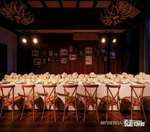 隨著明信片的線索被串聯(lián),我們正式步入由悅游Condé Nast Traveler與Mytheresa打造的après-ski限時體驗(yàn)空間。日落后,松花湖的天色從湛藍(lán)漸變?yōu)樯铄涞牡逅{(lán),歡聚的場域從開闊的雪場轉(zhuǎn)向溫暖的室內(nèi)。