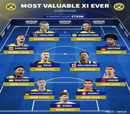 最后來(lái)看一下德轉(zhuǎn)最新羅列出的多特蒙德歷史最貴11人陣容,總身價(jià)高達(dá)7.95億歐元。除了上述所陳述的球員外,還包含了門(mén)將科貝爾,后衛(wèi)阿什拉夫、阿坎吉、施洛特貝克、馬特森;中場(chǎng)阿德耶米和羅伊斯。 |