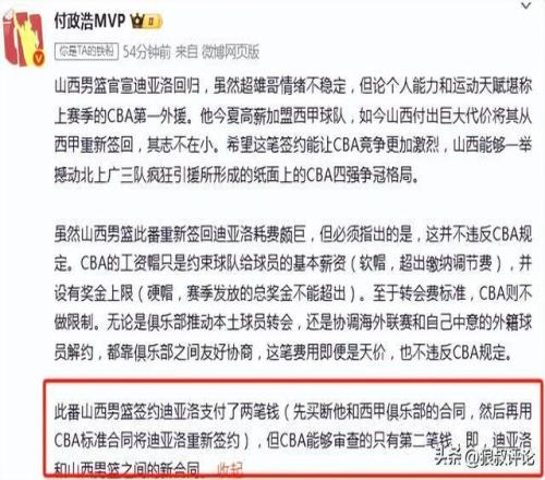 媒體人:山西重簽迪亞洛支付了兩筆錢(qián)CBA能夠?qū)彶榈膬H是第二筆錢(qián)