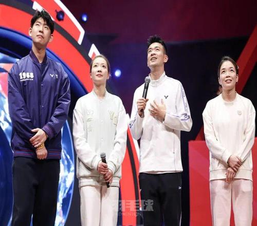 中國羽毛球協(xié)會張軍上臺回憶了和幾位名將的奮斗歲月,祝福他們未來越來越好,并送上組委會準備的瓷器人物版畫。