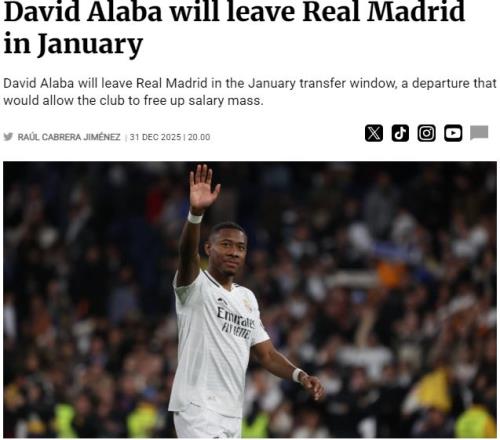 皇馬冬窗離隊第2人浮現(xiàn)!美國球隊150萬報價阿拉巴