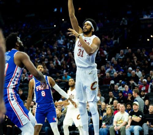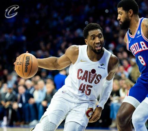 米切爾35+7+9打爆費(fèi)城雙槍?zhuān)瑔讨?4中7恩比德6失誤,騎士雙殺76人