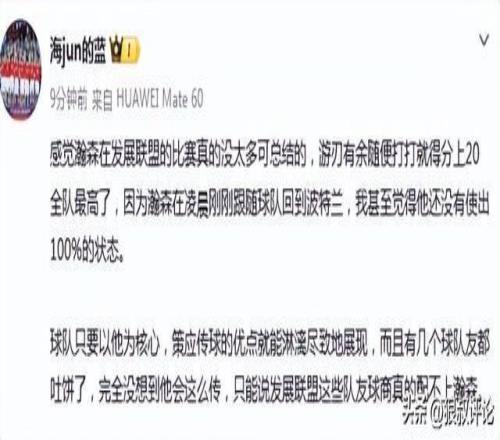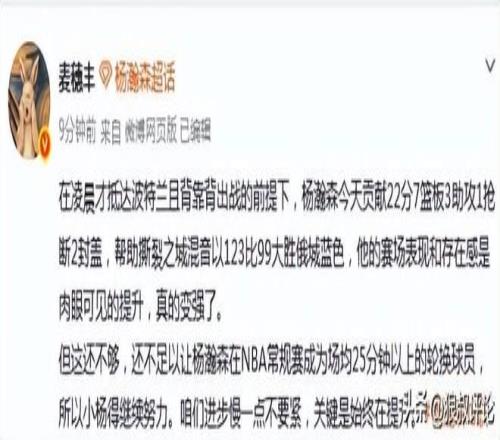 北京時間1月15日,NBA G聯(lián)賽繼續(xù)開打,撕裂之城混音以123比99大勝俄城藍色。 中國球員楊瀚森表現(xiàn)出色,交出22分7籃板3助攻1搶斷2封蓋,其中,得分創(chuàng)造征戰(zhàn)G聯(lián)賽的新高,而球隊幾乎完全圍繞他為核心,引發(fā)外界的熱議。 楊瀚森開局階段,表現(xiàn)有點慢熱,但在下半場逐漸找到狀態(tài),攻防兩端強度都有所提升。球隊也在第三節(jié)逐漸拉大分差,最終順利拿下勝利。 值得一提的是楊瀚森昨天剛在NBA打了10分鐘比賽,凌晨2點下飛機,休息之后直接登場打比賽。 媒體人“海jun的藍”發(fā)文點評: 感覺瀚森在發(fā)展聯(lián)盟的比賽真的沒太多可總結(jié)的,游刃有余隨便打打就得分上20全隊最高了,因為瀚森在凌晨剛剛跟隨球隊回到波特蘭,我甚至覺得他還沒有使出100%的狀態(tài)。 球隊只要以他為核心,策應(yīng)傳球的優(yōu)點就能淋漓盡致地展現(xiàn),而且有幾個球隊友都吐餅了,完全沒想到他會這么傳,只能說發(fā)展聯(lián)盟這些隊友球商真的配不上瀚森。 媒體人“麥穗豐”發(fā)文點評:在凌晨才抵達波特蘭且背靠背出戰(zhàn)的前提下,楊瀚森今天貢獻22分7籃板3助攻1搶斷2封蓋,幫助撕裂之城混音以123比99大勝俄城藍色,他的賽場表現(xiàn)和存在感是肉眼可見的提升,真的變強了。 但這還不夠,還不足以讓楊瀚森在NBA常規(guī)賽成為場均25分鐘以上的輪換球員,所以小楊得繼續(xù)努力。咱們進步慢一點不要緊,關(guān)鍵是始終在提升。 |