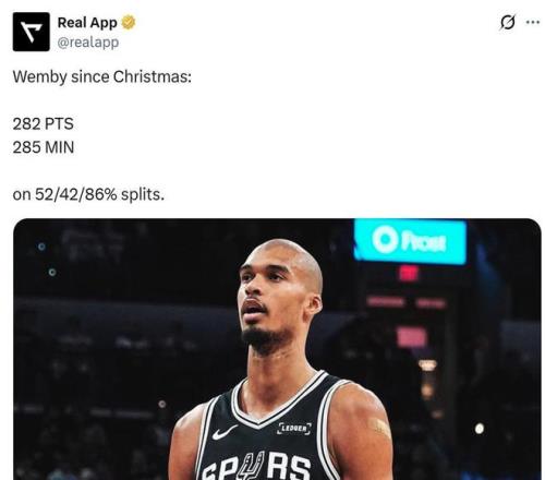 其中包括第二節(jié)單節(jié)轟下20分率隊(duì)一口氣將分差拉開到20分以上,以及末節(jié)面對森林狼反撲時,單節(jié)又獨(dú)攬12分頂住壓力。 哪怕關(guān)鍵時刻文班亞馬有些上頭,部分細(xì)節(jié)沒有處理好,但還是抓下制勝前場籃板率隊(duì)有驚無險復(fù)仇森林狼。 不得不感嘆文班亞馬恐怖的進(jìn)攻效率,自從年終大戰(zhàn)后,文班亞馬一共僅出戰(zhàn)285分鐘,卻拿下282分,幾乎一分鐘拿一分,并且三項(xiàng)命中率高達(dá)52/42/86%,這樣的表現(xiàn)也解釋了馬刺隊(duì)為何對待文班的傷病問題如此謹(jǐn)慎,一直采取“小傷大養(yǎng)”的方式讓其獲得更多休息,因?yàn)槲陌嗟奶熨x肉眼可見,只要能夠長久保持健康,他勢必將是NBA下一個十年的絕對門面人物。