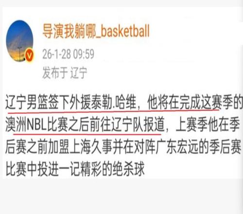 籃球媒體人:遼寧隊已經(jīng)簽約第六外援