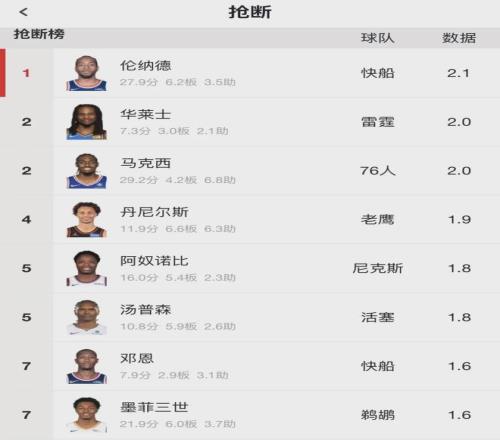 小卡出戰(zhàn)場數(shù)跟文班持平,比約基奇多1場,這個出勤率不算太差。本賽季倫納德場均出戰(zhàn)33.1分鐘,得到27.9分6.2籃板3.5助攻2.1搶斷0.6蓋帽2.1失誤,三項命中率:49.8%,39.7%,94%。場均得分聯(lián)盟第8,場均搶斷聯(lián)盟第1。