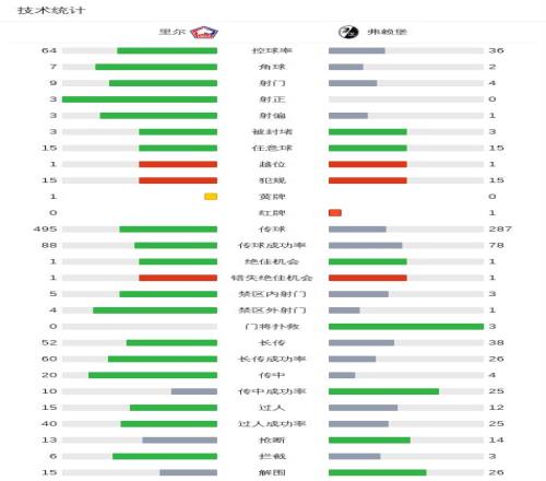 第74分鐘,埃格施泰因搶球直接踩到帕爾多腳踝,裁判出示直紅將其罰下