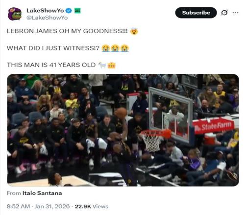 41歲詹皇空接平框暴扣!湖媒高呼OMG在場+25打卡還大幅降薪