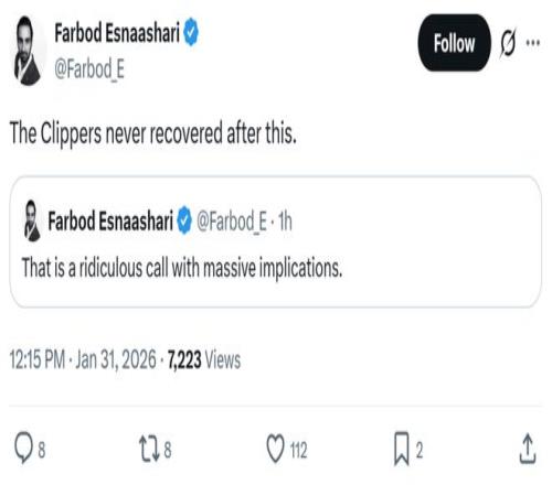 相比于罰球處于劣勢,讓快船隊更加難受的是,球隊每一次掀起反撲浪潮的關(guān)鍵時刻,掘金隊都能獲得罰球回應(yīng),導(dǎo)致快船隊總是距離翻盤差著一口氣,其中吹罰喬丹-米勒對小哈達(dá)威的爭議性三分犯規(guī)更是堪稱比賽轉(zhuǎn)折點 賽后隊記Farbod Esnaashari坦言:“這是一次非常離譜的吹罰,這對快船隊打擊巨大,自那之后,快船隊就再沒緩過來?!?/p>