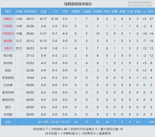 謝潑德連飆3記三分,火箭成功分超。馬刺徹底失準(zhǔn),第四節(jié)全隊(duì)三分球13中0。整個(gè)下半場(chǎng),文班亞馬11中1僅得2分。最后2分鐘兩隊(duì)打平,小賈中距離跳投命中,36.8秒申京籃下勾手。文班和卡斯?fàn)柸执蜩F,馬刺大勢(shì)已去。 全場(chǎng)結(jié)束,火箭111-106戰(zhàn)勝馬刺,完成16分大逆轉(zhuǎn)。上半場(chǎng)馬刺狂轟70分,下半場(chǎng)僅得36分,其中第四節(jié)只有14分。謝潑德21分2板4助、申京20分13板9助2帽、杜蘭特18分4板7助。文班21投5中僅得14分10板2助,賽季最差一戰(zhàn)!