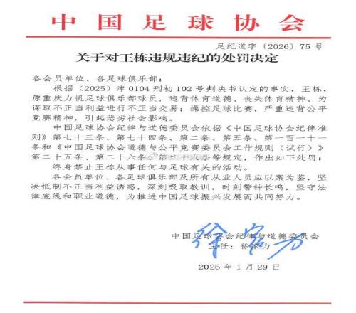 周四,中國足協(xié)正式公布受處罰俱樂部名單。天津津門虎被罰10分,王棟、鄧小飛則遭到終身禁足。