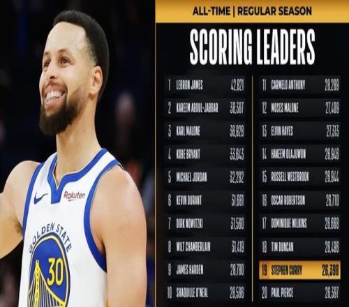 1月29日NBA常規(guī)賽繼續(xù)進行,金州勇士在庫里27分1籃板2助攻2搶斷,全隊8人得分上雙的情況下輕松擊敗了西部魚腩猶他爵士隊,球隊戰(zhàn)績27勝22負穩(wěn)居第八領(lǐng)先身后開拓者4.5個勝場,距離身前的太陽也只有2個勝場。此役對于庫里來說不僅僅個人發(fā)揮出色,幫助球隊贏下比賽的同時還打破了凱爾特人傳奇球星保羅皮爾斯(真理)的生涯紀錄!賽前據(jù)NBA官方統(tǒng)計,庫里生涯總得分26397分,和皮爾斯并列NBA歷史得分榜第十九,本場比賽只要得到1分就能完成超越,比賽首節(jié)8分10秒時庫里外線單打馬爾卡寧飚中三分,正式完成對“真理”皮爾斯的超越。加上本場比賽的27分庫里生涯總得分來到了26424,距離“石佛”鄧肯生涯總得分僅有62分差距,未來2-3場比賽就將大概率完成超越,讓我們一起恭喜祝福庫里!