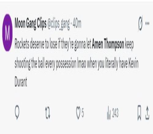 火蜜:火箭如果每一輪進(jìn)攻都讓阿門去發(fā)起、終結(jié)那必然會輸球,尤其是隊內(nèi)還有杜蘭特的時。