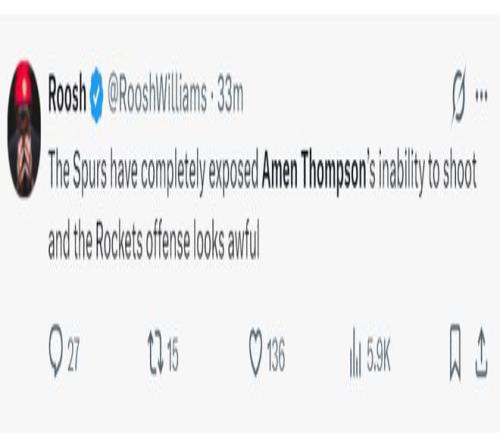 賽后休媒紛紛炮轟阿門:馬刺隊徹底暴露了阿門的投籃能力不足的問題,當(dāng)然火箭隊的進(jìn)攻表現(xiàn)也相當(dāng)糟糕。