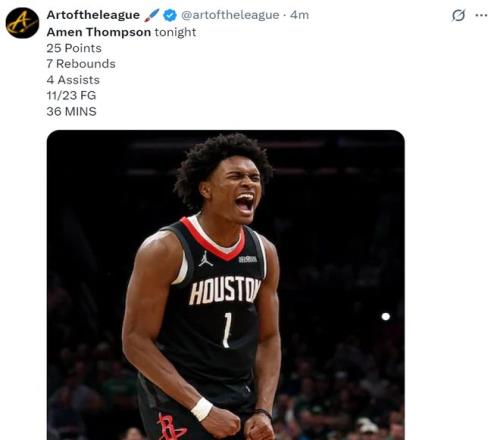 此役阿門-湯普森全場比賽36分鐘,23中11,罰球3中3,拿到火箭最高的25分外加7分4籃板4搶斷1蓋帽,命中率47.8%,整個第四節(jié)7中1拿2分,他出手是火箭最多。