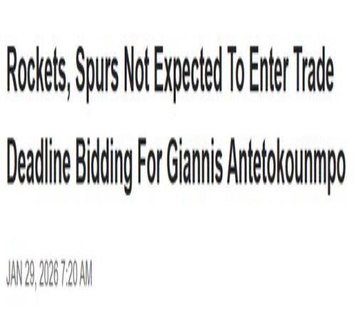 北京時間1月29日,據(jù)ESPN名記麥克馬洪與邦坦普斯報道,馬刺隊與火箭隊均手握青年才俊與未來選秀權(quán)的組合,理論上完全有能力向雄鹿隊開出交易報價,追求字母哥,且不必徹底放棄本賽季的爭冠競爭力。但隨著字母哥2月5日NBA交易截止日前進入交易市場,外界預計這兩支球隊均不會參與到這場爭奪戰(zhàn)中。