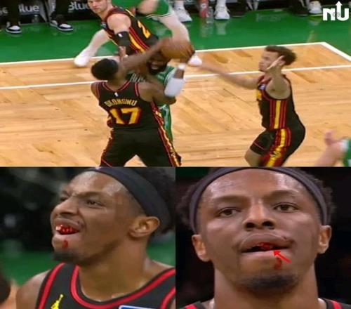 北京時間1月29日,NBA常規(guī)賽,凱爾特人主場106-117不敵老鷹。奧孔古在防守杰倫-布朗時,被后者不小心一肘打掉牙齒,畫面有些瘆人。