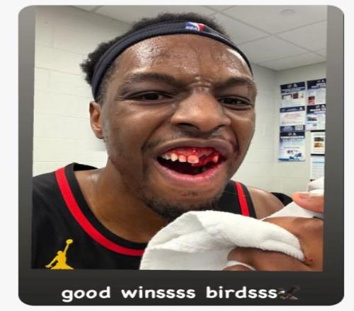 比賽第四節(jié)中段,杰倫-布朗試圖擺脫防守時,右肘打到奧孔古,被吹惡意犯規(guī)。 布朗賽后表示:“我根據(jù)自己臉部骨折和牙齒崩掉的經(jīng)歷深知,那真是個大麻煩。所以,我絕對不是故意的。我知道他接下來要在牙醫(yī)那兒待上很久了。希望他能順利康復(fù)?!?/p> 奧孔古下場時,他的老鷹隊(duì)友面露驚恐。賽后,奧孔古在社媒發(fā)布了受傷照片,并配文:“精彩的勝利,老鷹!”