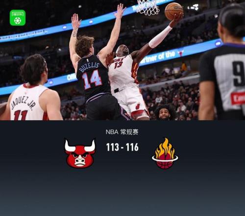 北京時(shí)間1月30日NBA 常規(guī)賽,芝加哥公牛對(duì)陣邁阿密熱火。次節(jié)開始熱火便持續(xù)保持10分上下領(lǐng)先,比賽還剩最后4分鐘時(shí),熱火突然斷電,公牛多森姆連得9分領(lǐng)銜追分,在比賽還剩最后10秒迫近至1分,隨后采取犯規(guī)戰(zhàn)術(shù),最后一攻科比懷特絕平三分不中,最終熱火116-113公牛。