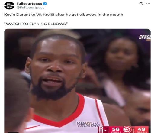 火箭擒4連勝老鷹!杜蘭特31分被肘出血小史密斯3斷5帽申京14中3