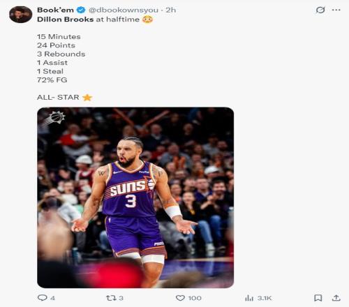 這場(chǎng)比賽的狄龍就如同布克附體一般,他首節(jié)6中3+三分2中1拿到9分1籃板1助攻1搶斷,次節(jié)更是5中5+三分1中1+罰球4中4拿到15分(除了罰球都是投籃),半場(chǎng)狄龍15分鐘以72%的命中率拿到24分。