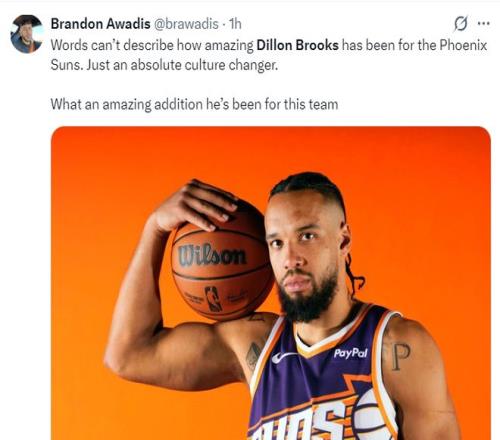 太陽記者布蘭登-安瓦迪:無法用言語形容狄龍對(duì)太陽做出的貢獻(xiàn)有多么巨大,他完全改變了鳳凰城的文化,他對(duì)這個(gè)團(tuán)隊(duì)有著巨大的補(bǔ)充。 |