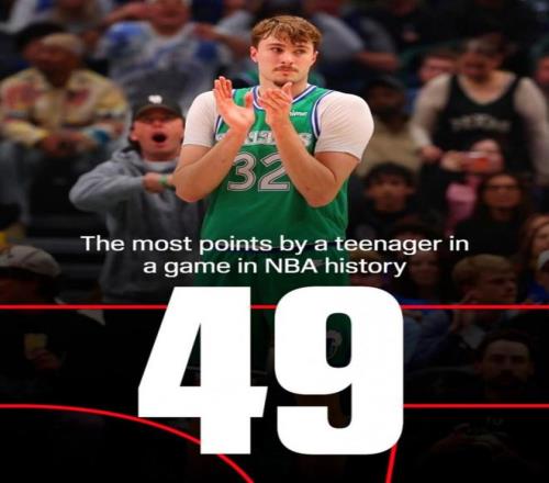 第三項(xiàng):單場49分創(chuàng)造NBA歷史19歲球員單場得分新紀(jì)錄,18歲紀(jì)錄也由弗拉格保持(42分); 第四項(xiàng):單場49分創(chuàng)造其生涯單場得分紀(jì)錄,此前是42分; 第五項(xiàng):單場49分創(chuàng)造獨(dú)行俠隊(duì)史新秀單場得分紀(jì)錄。