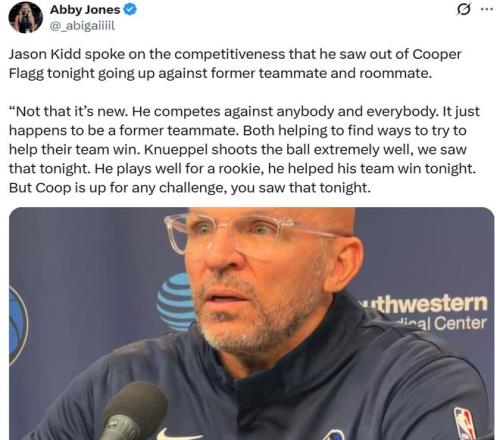 獨(dú)行俠主帥基德也對(duì)弗拉格送上稱贊:“弗拉格從來都不在意數(shù)據(jù),只在乎比賽勝負(fù),這是他的本色,從來不會(huì)糾結(jié)于技術(shù)統(tǒng)計(jì),所以他成為冠軍只是時(shí)間問題,并且相信很快就能實(shí)現(xiàn)這一目標(biāo)?!?/p> 除此之外,基德稱贊了最終送出準(zhǔn)絕殺的克努佩爾:“克努佩爾的投籃投射太出色了,今晚我們見識(shí)了這一點(diǎn),他的表現(xiàn)十分亮眼,也為球隊(duì)贏球立下了汗馬功勞?!?/p>