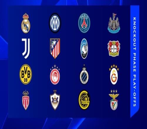 【附加賽具體對陣】(種子隊在前,先客后主) 皇馬(9)VS本菲卡(24) 國際米蘭(10)VS博德閃耀(23) 巴黎圣日耳曼(11)VS摩納哥(21) 紐卡斯?fàn)枺?2)VS卡拉巴赫(22) 尤文圖斯(13)VS加拉塔薩雷(20) 馬德里競技(14)VS布魯日(19) 亞特蘭大(15)VS多特蒙德(17) 勒沃庫森(16)VS奧林匹亞科斯(18)
